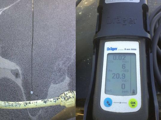 Das Bild links zeigt einen extrem mit Sand und Fremdkörpern verunreinigten Fermenter mit vorgesetzter Heizung nach 10 Jahren Betrieb mit ausschließlicher Fütterung von Feldsilage.