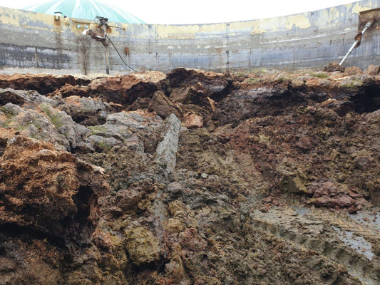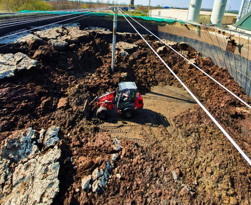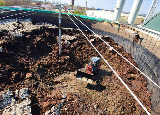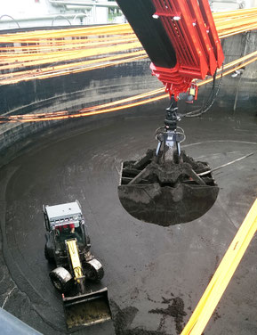 Seit 2011 baggern wir Fermenter, Nachgärer, Endläger und Lagunen mit mittlerweile 4 Behälterbaggern aus.