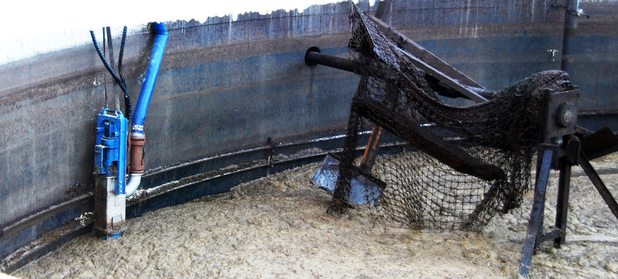 Eine Behälterentleerung kann auch schon früher notwendig sein, wenn mineralische Beimengungen (Sand, Erde) im Substrat-Input den störungsfreien Betrieb behindern.
