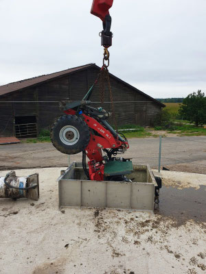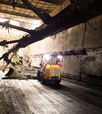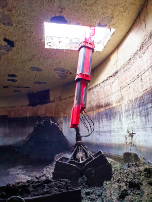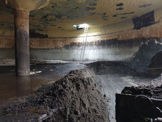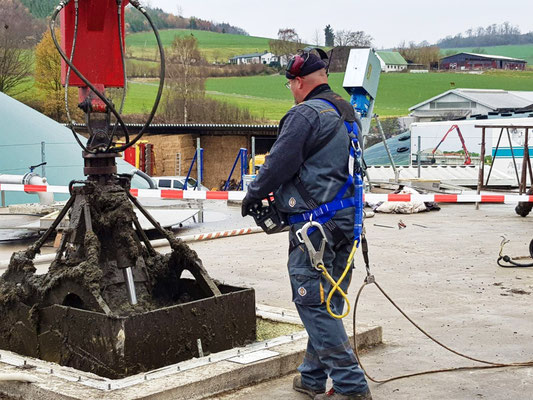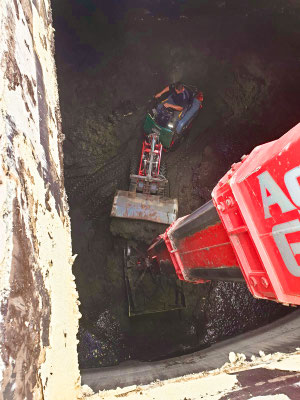 Das Begleitfahrzeug führt 1-2 Radlader, Pumpen mit ca. 100 m Druckschläuchen, Bogen- und Übergangsstücken, Atemschutztechnik und Gassmesstechnik mit. So können sich unsere Monteure vor Ort auf jede Situation einstellen. Ob erst gepumpt werden muss oder ob gleich gebaggert werden kann: mit unserer Technik und unserer Erfahrung kann auch Ihr Behälter termingerecht gereinigt werden.