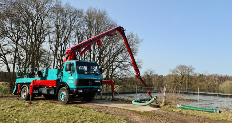 Als landtechnisches Lohnunternehmen sind wir seit 1987 tätig. Das Güllemixen wurde 1995 einer unserer Schwerpunkte. Seitdem haben wir unsere Güllemixer mit jeder neuen Maschine (1997, 2007, 2009, 2014, 2015, 2022 und 2024) kontinuierlich weiterentwickelt. 2011 haben wir unseren ersten Behälterbagger entwickelt. Seitdem können wir unseren Kunden die Fermenterreinigung und das Ausbaggern von Hochbehältern und Betonlagunen anbieten. 2014 wurde der zweite Behälterbagger aufgebaut. Alle Bagger haben eine Sattelzugmaschine und Auflieger als Begleitfahrzeug, dass die gesamte Technik (Radlader, Pumpen und Pumptechnik, Lüftergebläse, Atemschutz, Gassmesstechnik etc.) mitführt. Seit 2017 haben wir den dritten Behälterbagger im Einsatz, der sich durch die 3 cbm Schaufel und verstärkten Turm auszeichnet. 2021 wurde der vierte Behälterbagger beschafft und 2023 unser fünfter Bagger. 2020 wurde der Gülleseparator mit 3 Börger RC 150 in Betrieb genommen.